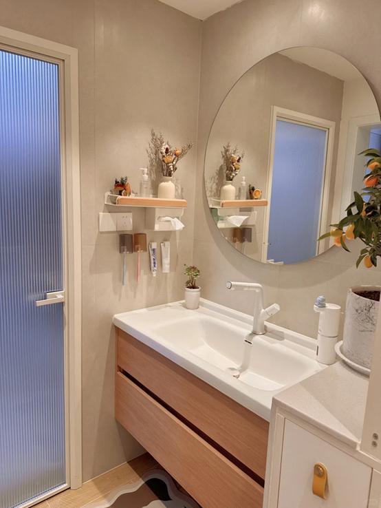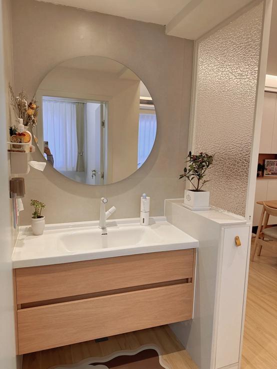 之前我在将洗漱区域外置的时候,就只是在洗漱区的旁边坐了一个半墙作为隔断,刚开始觉得这样看起来很通透,但入住一段时间之后就发现了其中的弊端。